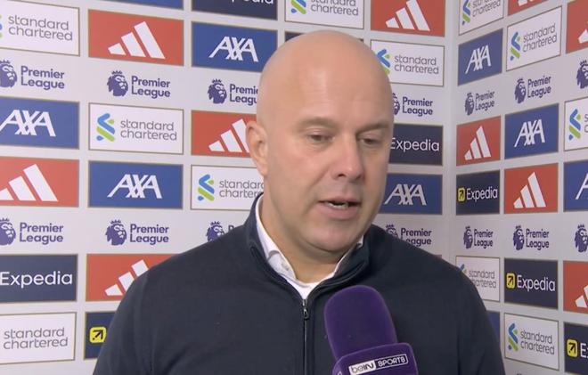 英超第14轮,利物浦主场1-1战平桑德兰,赛后,红军主帅斯洛特接受了拜因体育的采访。